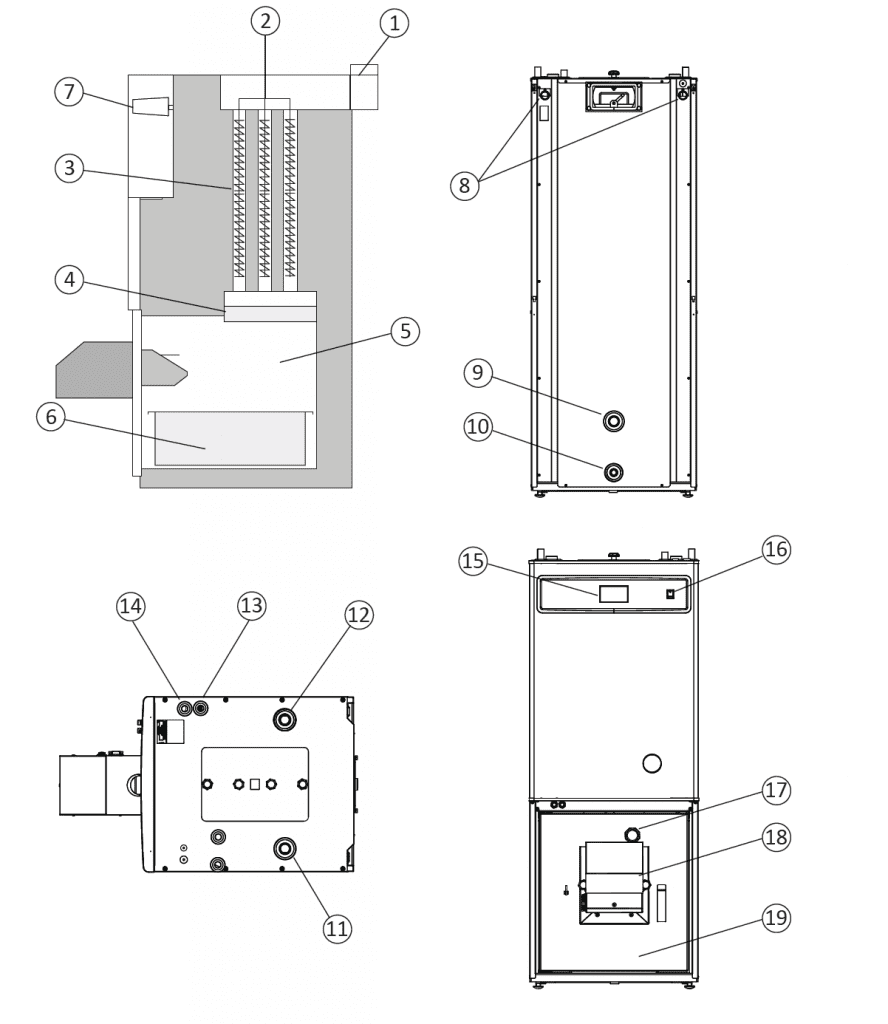 Kocioł PELLUX 200 Touch może współpracować z innymi źródłami ciepła np. kolektory słoneczne, kominek z płaszczem itp.