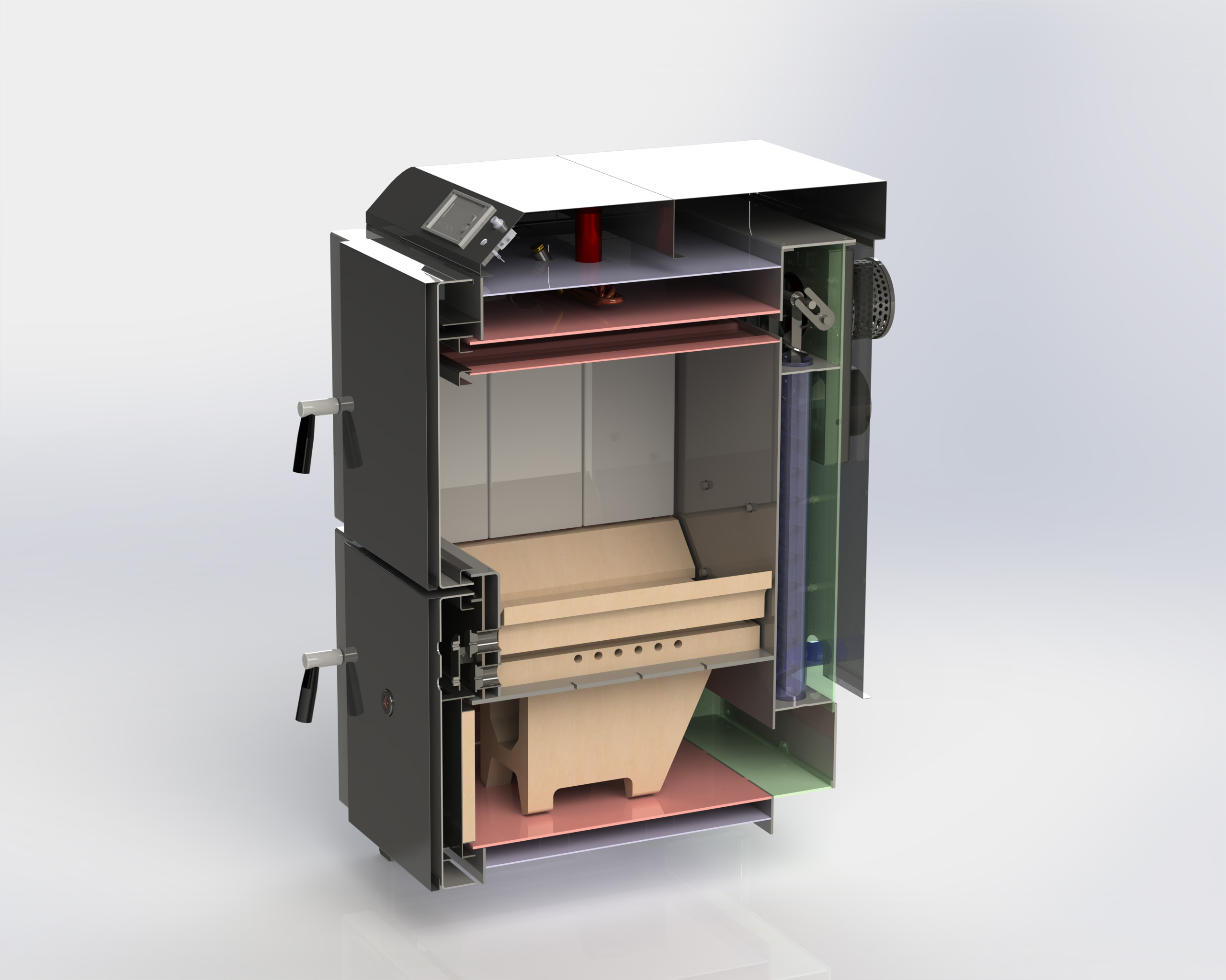 Kocioł LIGNUM wyposażony jest w sterowanie elektroniczne, które umożliwia proste i łatwe poruszanie się po różnych opcjach zarządzania systemem grzewczym. Sterowanie to pozwala na dostosowanie mocy kotła do potrzeb budynku, modulując prędkość wentylatora do wartości nawet 50% mocy nominalnej, poprawiając sprawność kotła.